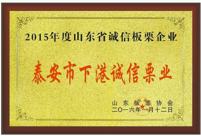 山东省泰安市下港诚信栗业被评为2015年度省级诚信板栗企业。